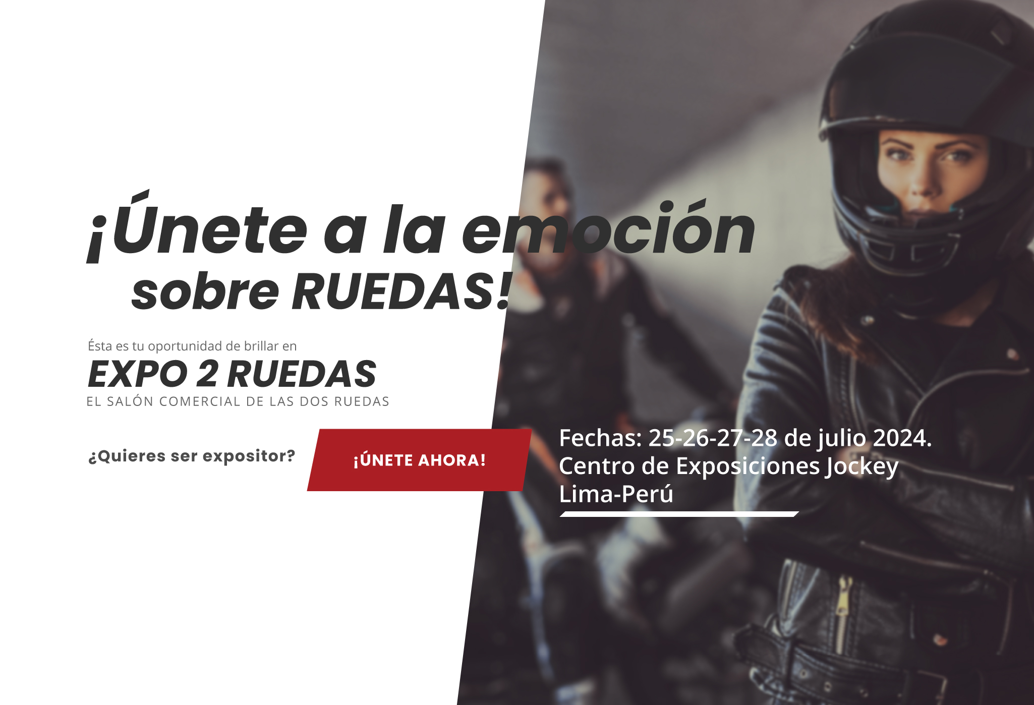 Expo 2 Ruedas – Moto Fair Perú será el epicentro comercial y tecnológico en el mundo de las 2 ruedas, repuestos, accesorios, equipos y servicios destinados al sector . Nuestra misión reside en impulsar activamente el crecimiento sectorial y fomentar el desarrollo continuo del mismo.